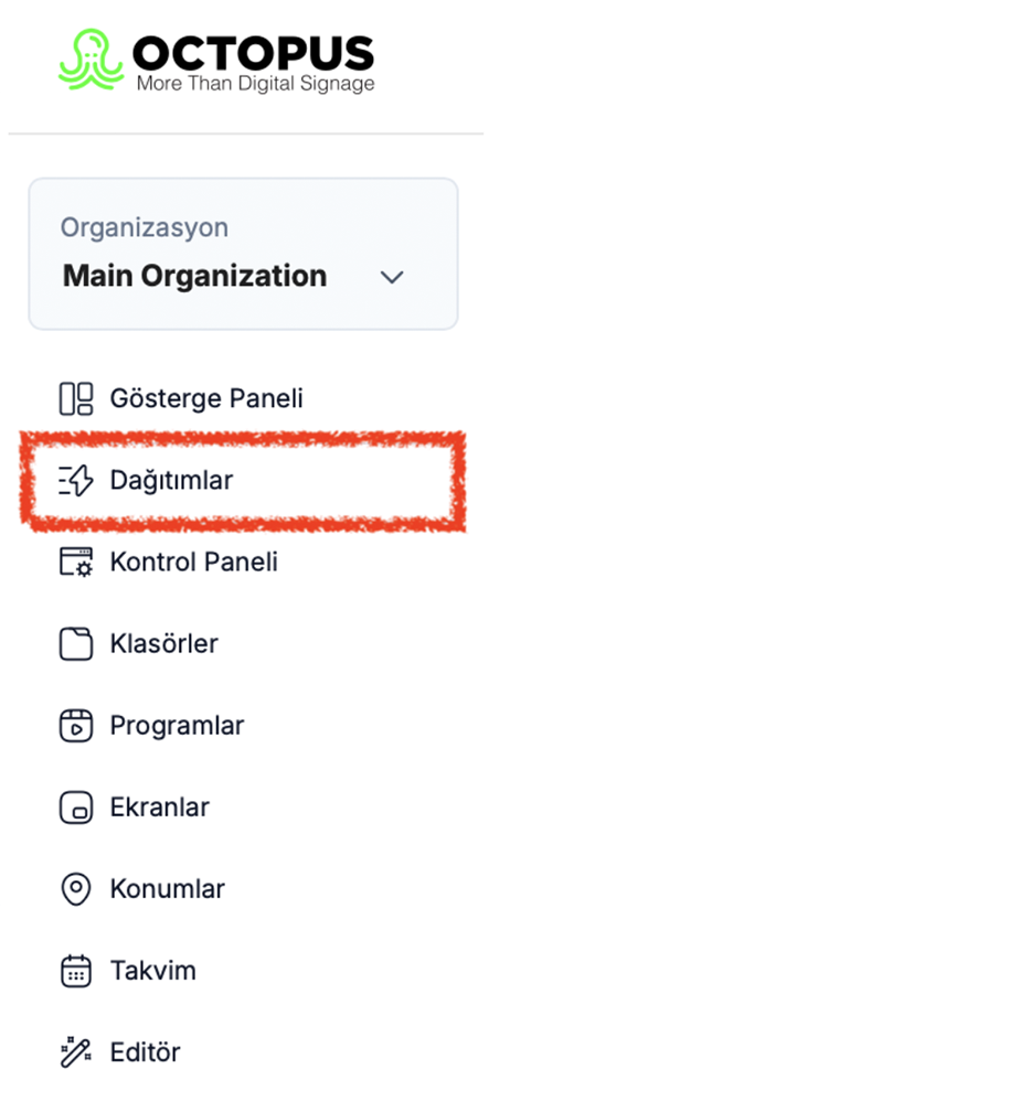 Herhangi bir klasörde içerik ekleme/çıkarma/sıra değiştirme ya da program kısmında herhangi bir güncelleme yapılmak istendiği zaman üst kısımda “Dağıtım Bekleniyor” şeklinde bir uyarı çıkar. Bu, verilecek olan onaydan sonra yapılan tüm güncellemeleri ekranlara ulaştırmak içindir.